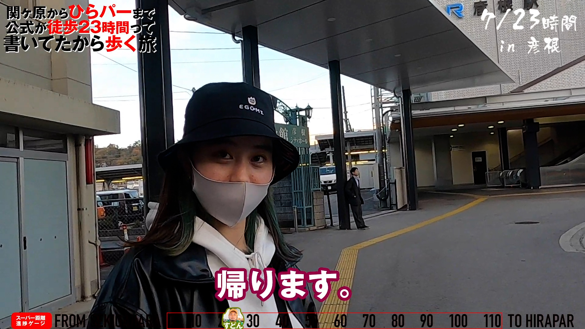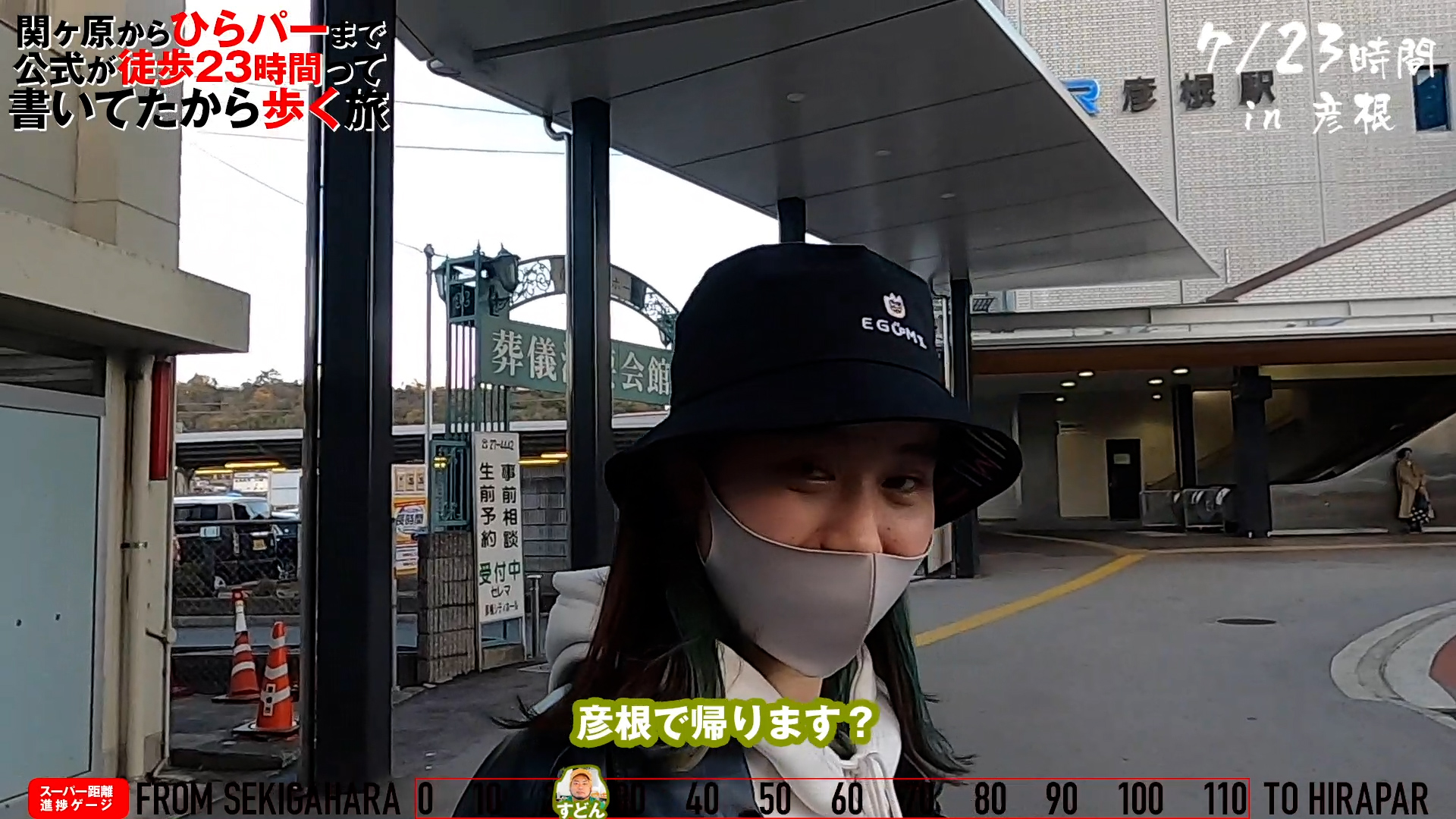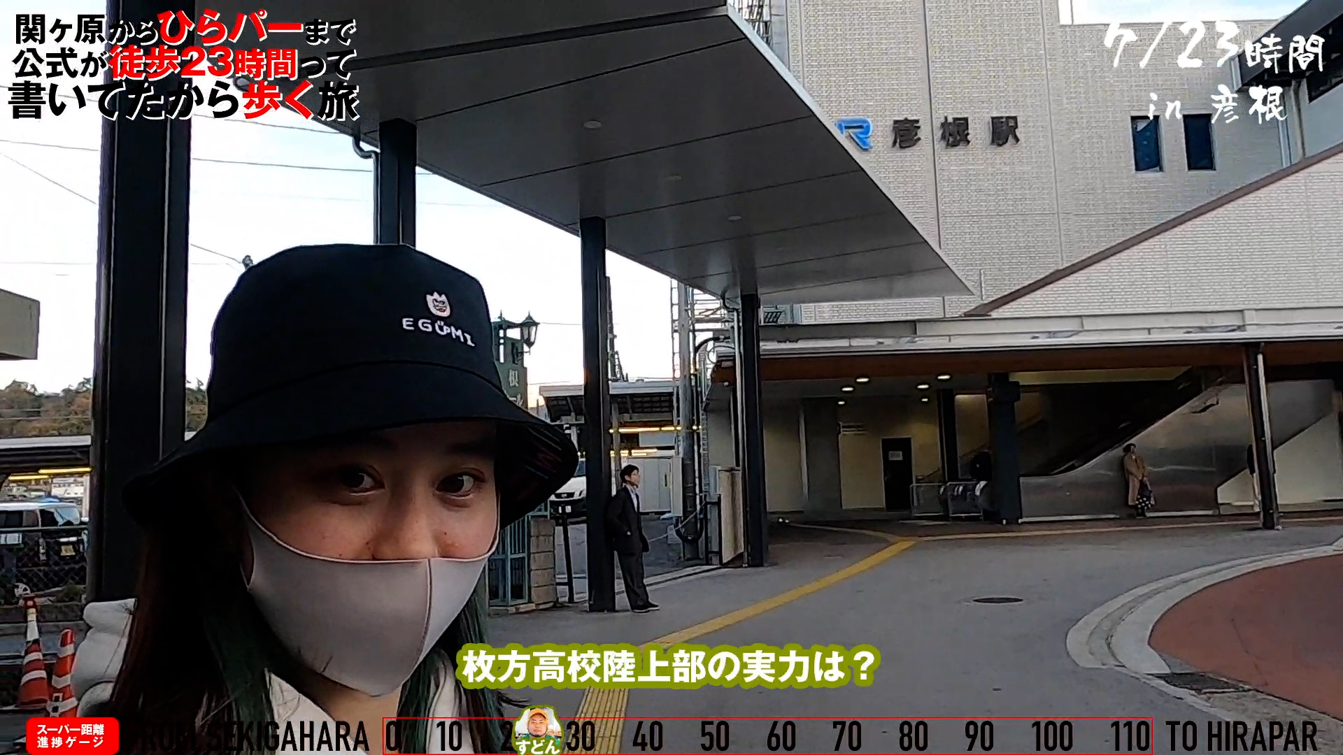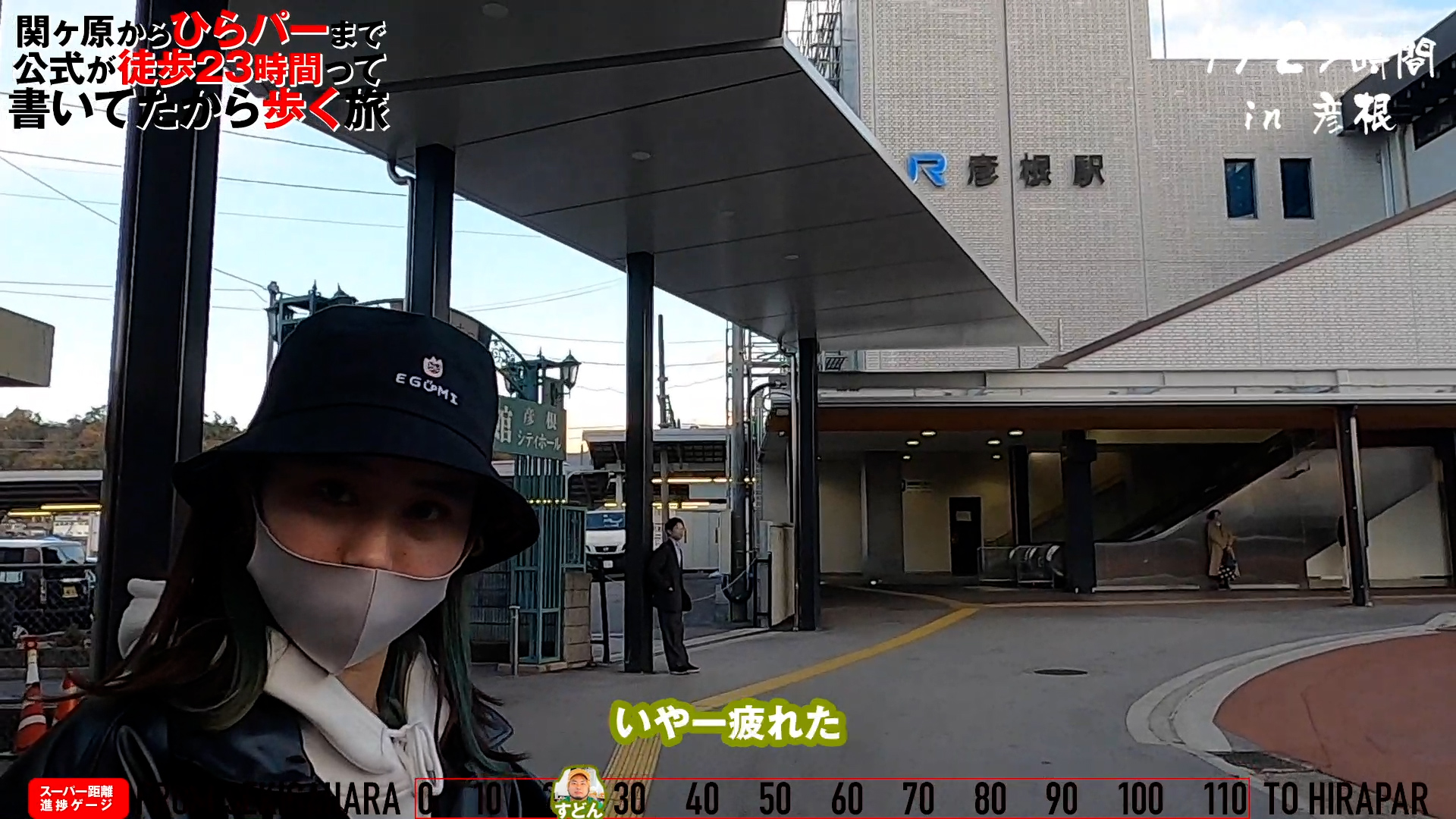 そんなわけでスタートしてから7時間と少しで、25kmくらいの地点にある彦根駅にやってきた我々。