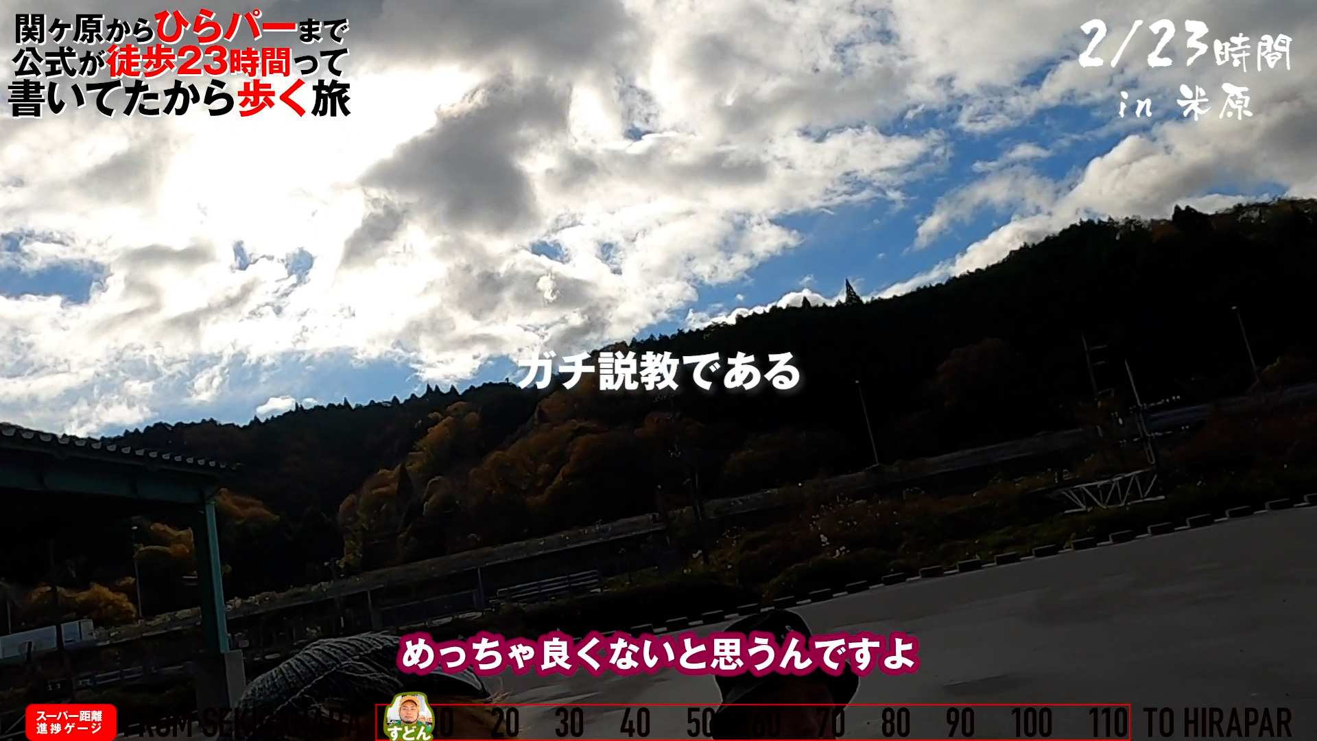 2時間が経過して、不正を働こうとした僕をお白の方がガチ説教してきたシーン。まだ米原の入り口周辺。