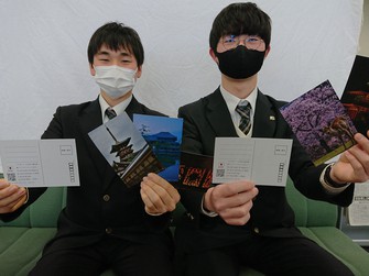 手がけたのは、同校地域創生コース3年の松川統吾さん(17)、戸上彗(けい)さん(18)ら3人。授業の課題で、2年の時から「奈良のパンフレット」について研究、大きいパンフレットだと持ち運びに不便などの問題点に気づいたといい、ポストカード型の「観光パンフレット」を思いついた。