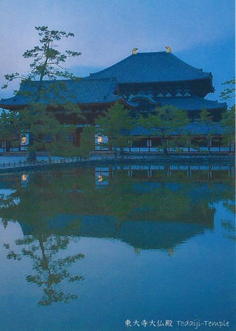 東大寺大仏殿の写真をあしらったポストカード型の観光パンフレット