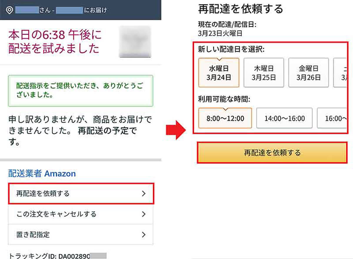 Amazonの商品の「再配達」の申し込み方法