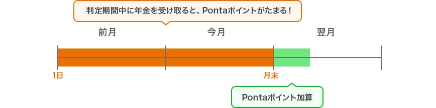 ※年金の受け取りは原則2カ月に1度の振り込みのため、1度の年金受け取りで年金受取月と翌月が判定期間となります。次回判定期間は2022年7月1日~2022年8月31日、Pontaポイントの加算日は2022年9月上旬頃です。